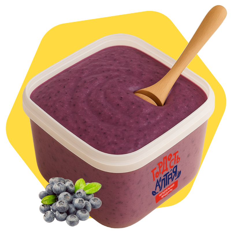 Крем-мёд с черникой — это натуральный десерт с глубоким ягодным вкусом и бархатистой текстурой. В основе — цветочный мёд из Алтайского края, холодного взбивания, с добавлением натуральной черники (сублимированная ягода, пюре или жмых). Ягода придаёт мёду насыщенный фиолетово-сиреневый оттенок и характерный лесной вкус с лёгкой кислинкой.